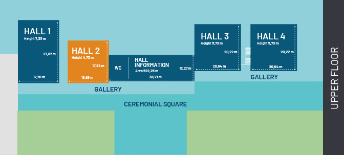 Hall of 335,10 square metres, prepared to host events of 250 pax in theatre type layout and 104 pax in the form of a classroom. The floor of this room is 18.86m x 17.82m. It also has a projection system and a 6×5 m screen.