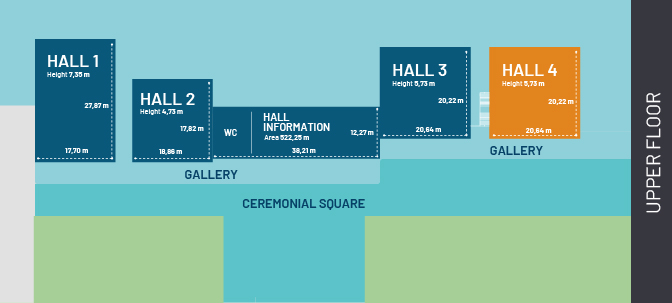 It is a room with 419,50 square metres, prepared to host events of 350 pax in theatre type layout and 120 pax if the layout is in the form of a classroom. The floor plan is 20.22m x 20.64m.