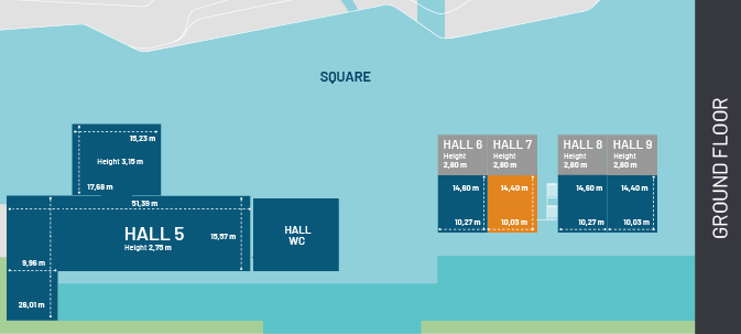 It is a room of 144,43 square metres prepared to host events for 120 people in a theatre layout and 90 people if the layout is in the form of a classroom. The floor plan is 14,40m x 10,03m.