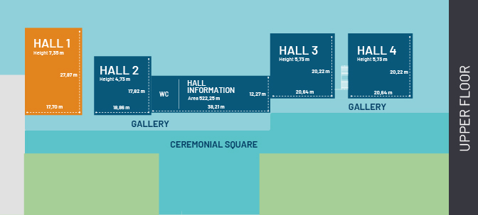 Hall with 496,62 square metres prepared to host events of up to 400 pax in a theatre type layout and 350 pax in a classroom. The floor plan is 17.70m x 27.87m. It has a projection of 15.000 lumens with a screen of 9m x 6.35m and a sound system integrated in the room.