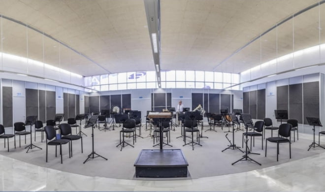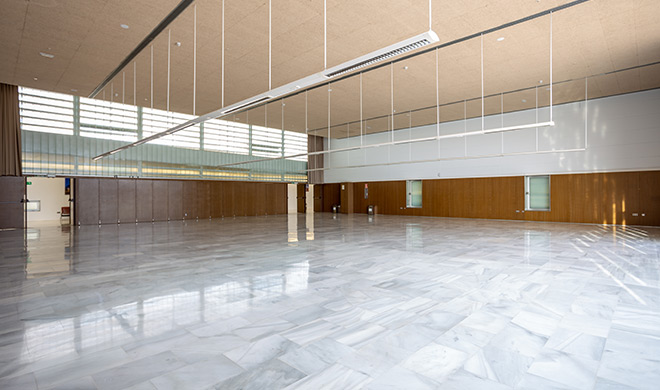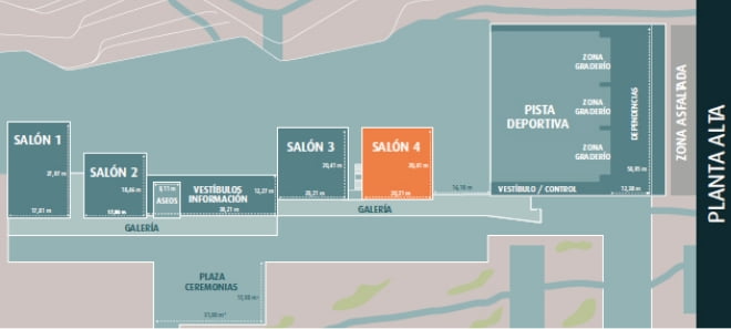Es una sala con 419,50 metros cuadrados, preparada para albergar eventos de 350 pax disposición tipo teatro y 120 pax si la disposición se hace en forma de aula. La planta es de 20,22m x 20,64m.