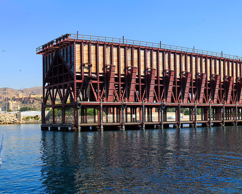 Die Verladestation für Bodenschätze, “Cable Inglés” genannt, steht an der Playa de las Almadrabillas, neben dem Ost-Pier und am Ende einer Seitenlinie der Eisenbahn. Sie war anfänglich Eigentum des englischen Bergbauunternehmens “The Alquife Mines Railway Limited” (daher stammt der Name), das 1901 die Konzession erwarb, und 1902 sofort mit dem Bau begann.