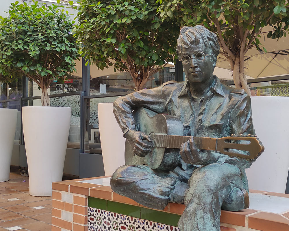 Sie ist dem Beatles-Mitglied im Andenken an seinen Aufenthalt in der Stadt Almeria wähend seiner Dreharbeiten zu dem Film “Wie ich den Krieg gewann” (1966) gewidmet. Wähend seines Besuchs wohnte John Lennon im Landhaus Santa Isabel (das heutige Casa del Cine – Haus des Films), wo er auch Strawberry Fields Forever komponierte. Die Statue, die ursprünglich in der Avenida Federico Garcia Lorca stand, befindet sich derzeit auf der Plaza de las Flores – Platz der Blumen, mitten im historischen Zentrum der Stadt.
