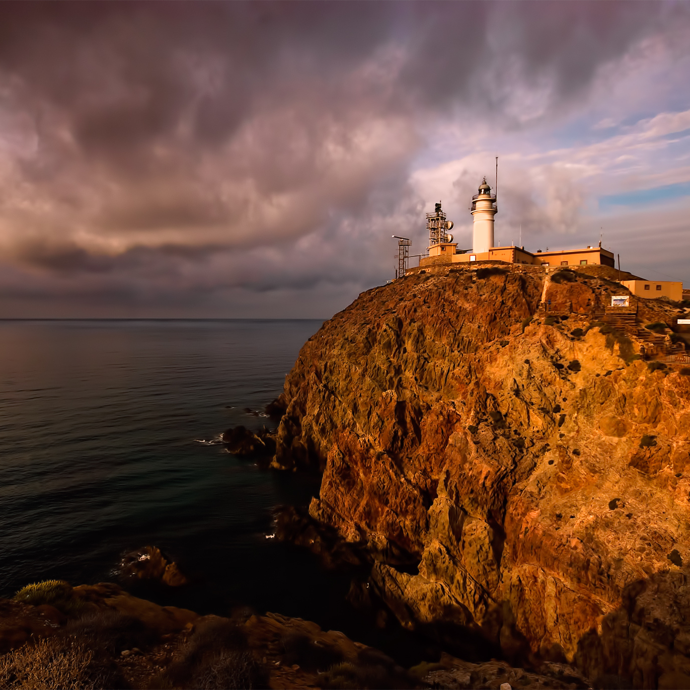 Las Salinas: mit der landschaftlichen Schönheit ihrer natürlichen Teiche und den Vögeln, die man von der ornithologischen Beobachtungsstation aus sehen kann. An dieser Stelle kann man die Silhouette des grazilen Turms der Kirche von Las Salinas aus dem Jahr 1907 sehen, der die Umgebung in einen absolut einzigartigen Ort verwandelt. Wenn man die gleiche Landstraße weiter fährt, und die Fabriquilla rechts liegen lässt, kommt man hinauf zum Leuchtturm von Cabo de Gata, von wo aus man die einzigartige Umgebung des Sirenen-Riffs (Arrecife de las Sirenas) bewundern kann.