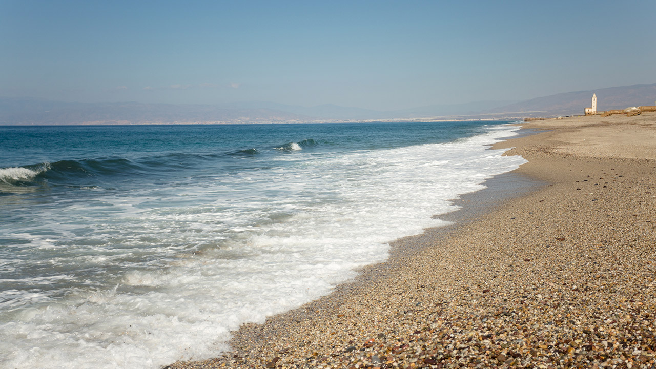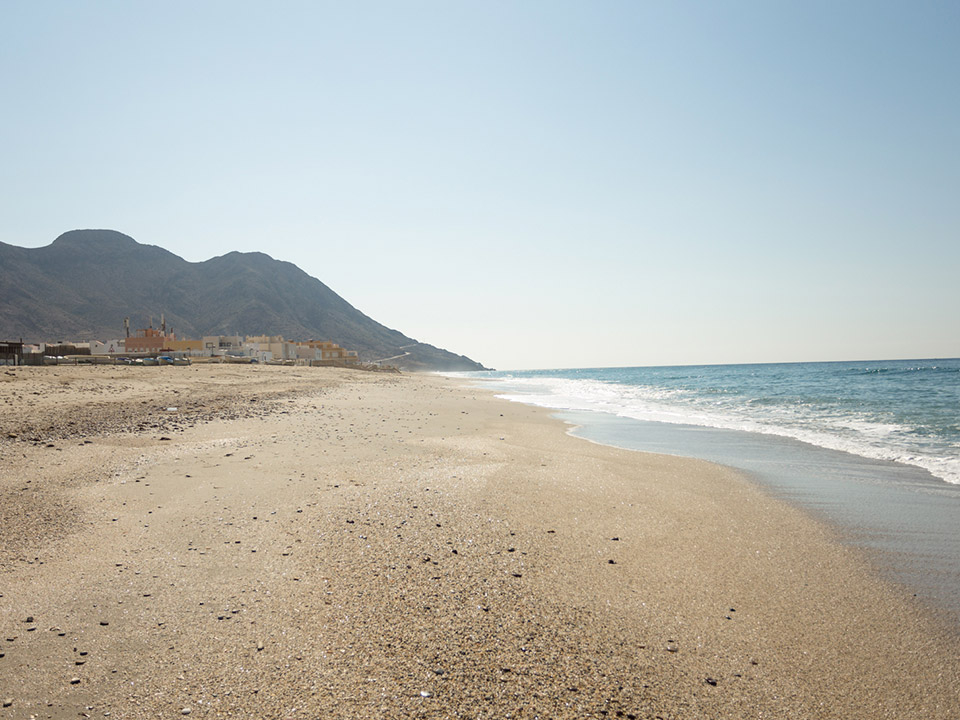 Der Strand Playa de la Almadraba de Monteleva ist die Verlängerung nach Osten des Strands von Las Salinas und gehört zu einer kleinen Ortschaft gleichen Namens. Am Anfang des Strands hat man einen atemberaubenden Blick auf die Kirche “Iglesia de las Salinas”, auf die traditionelle Kunst und die Boote der Fischer und auf die Salinenanlage und ihre Salzberge.
