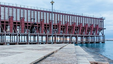 Die Verladestation für Bodenschätze, “Cable Inglés” genannt, steht an der Playa de las Almadrabillas, neben dem…