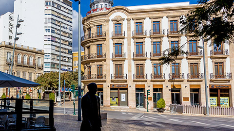Ein Werk von Jesus de Perceval, das sich auf dem Plaza Campoamor, gegenüber dem Palacio de los Marqueses de Cabra –…