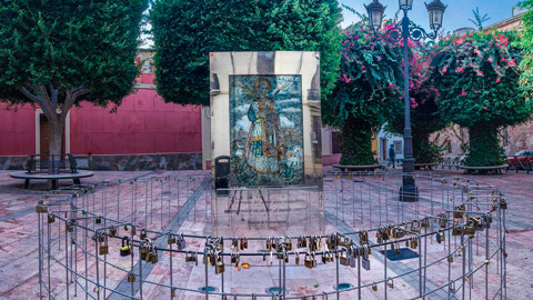 Seit 1984 schmückt diese Skulptur den Bendicho Platz als Hommage an die Schriftstellerin Celia Viñas Olivella (Lerida,…