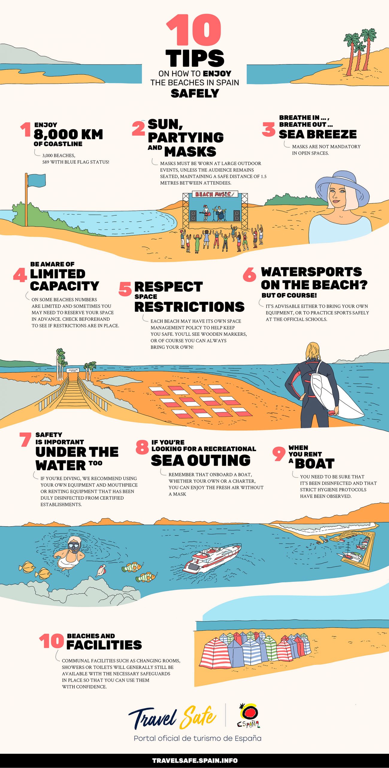 Before you go, check out what measures are in place at the beach you’re planning to visit, for example maximum capacities or the need to reserve space, etc.