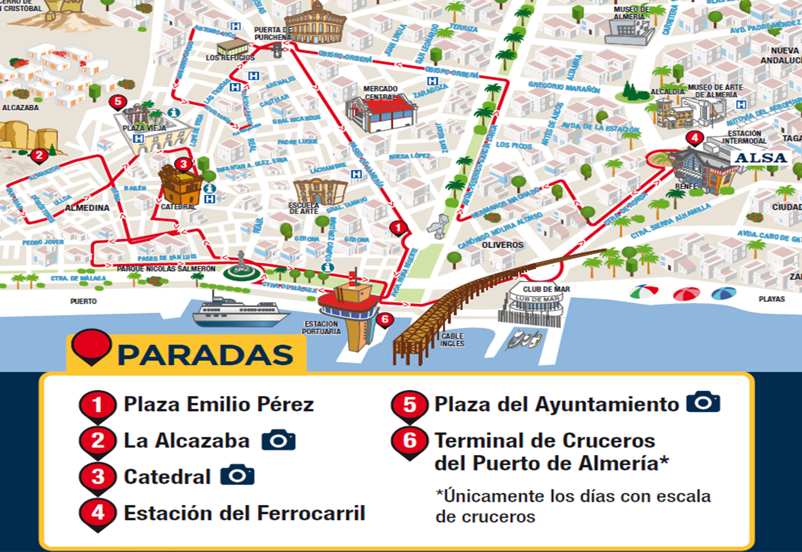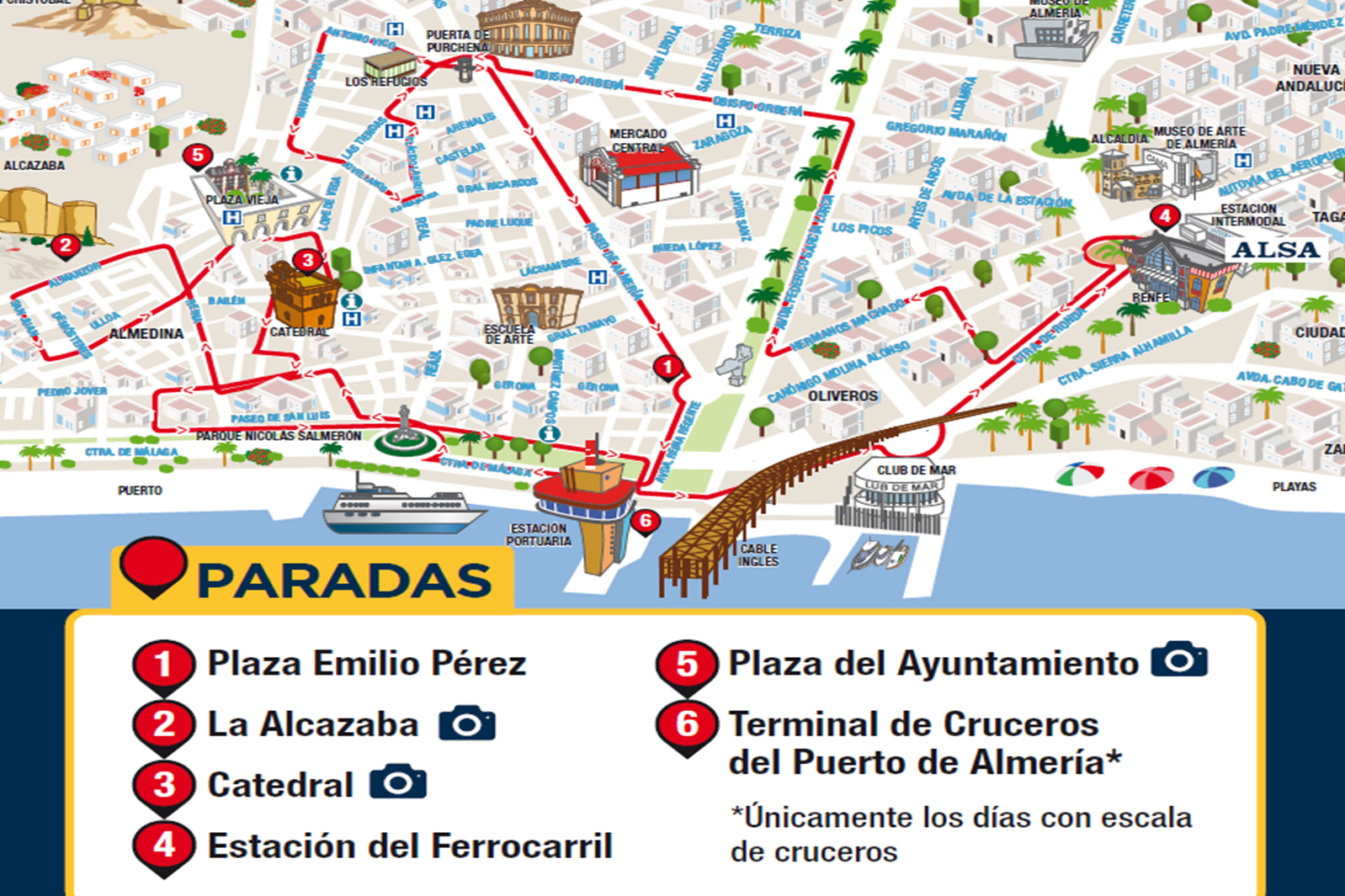 Departure: Emilio Pérez Square (Plaza Circular), located at the bottom of the Paseo de Almería.