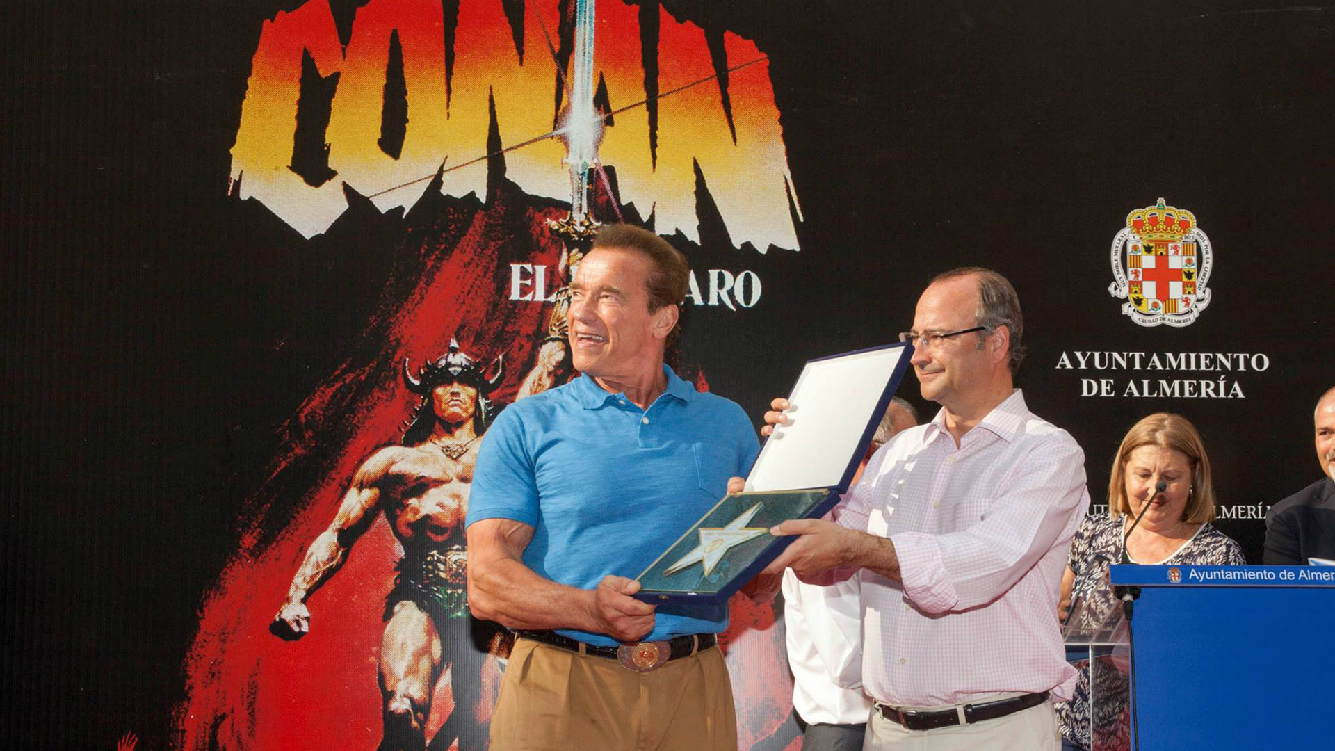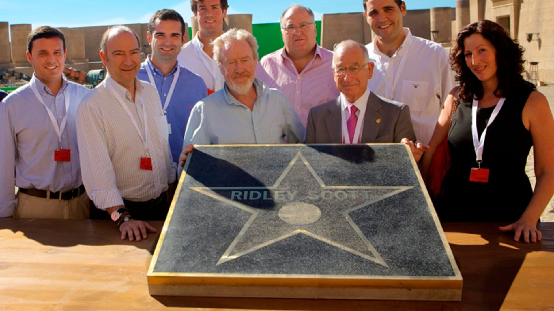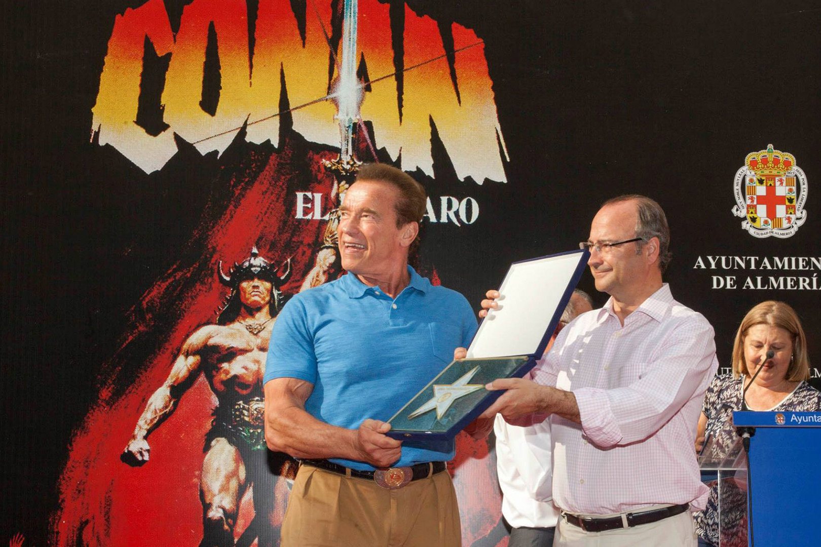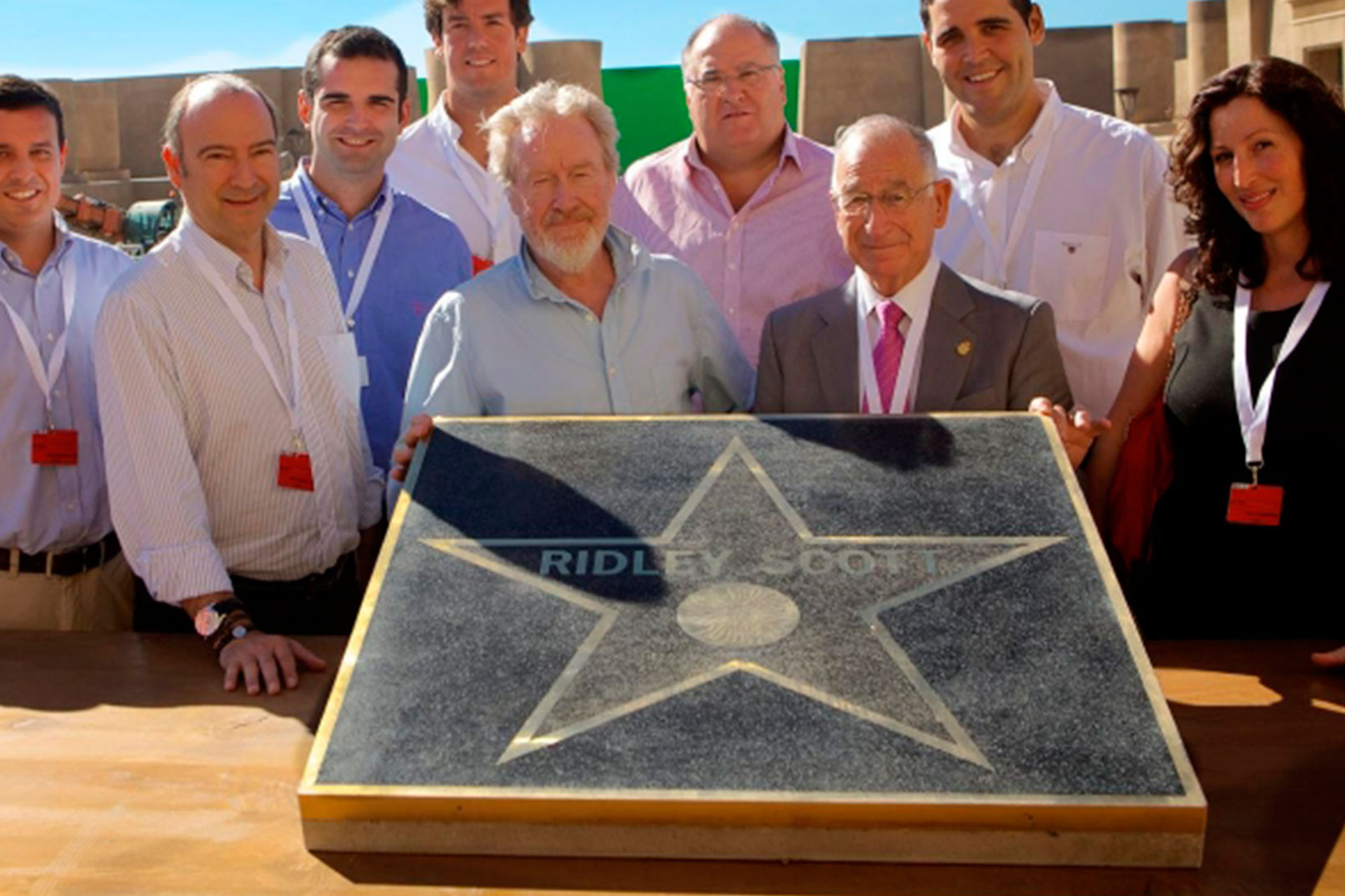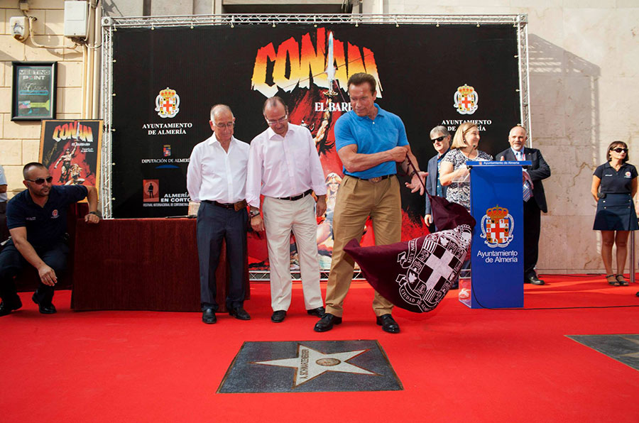 Patrick Wayne, Omar Sharif, Ridley Scott, Denis O´Dell, Ángela Molina, Terry Gullian y Schwarzenegger, are among the names shown in these stars of fame.