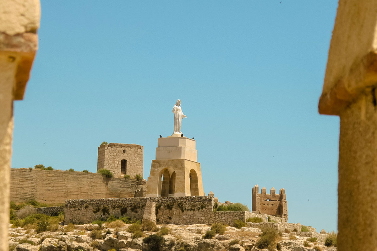 On this hill, which has an impressive view of the city, and located on a large pedestal, is the image of the Sacred Heart of Jesus, constructed of local Macael marble. It was restored in 2000 and it is said to bless the city and the Mediterranean Sea. It was originally built in the twentieth century (around 1930).