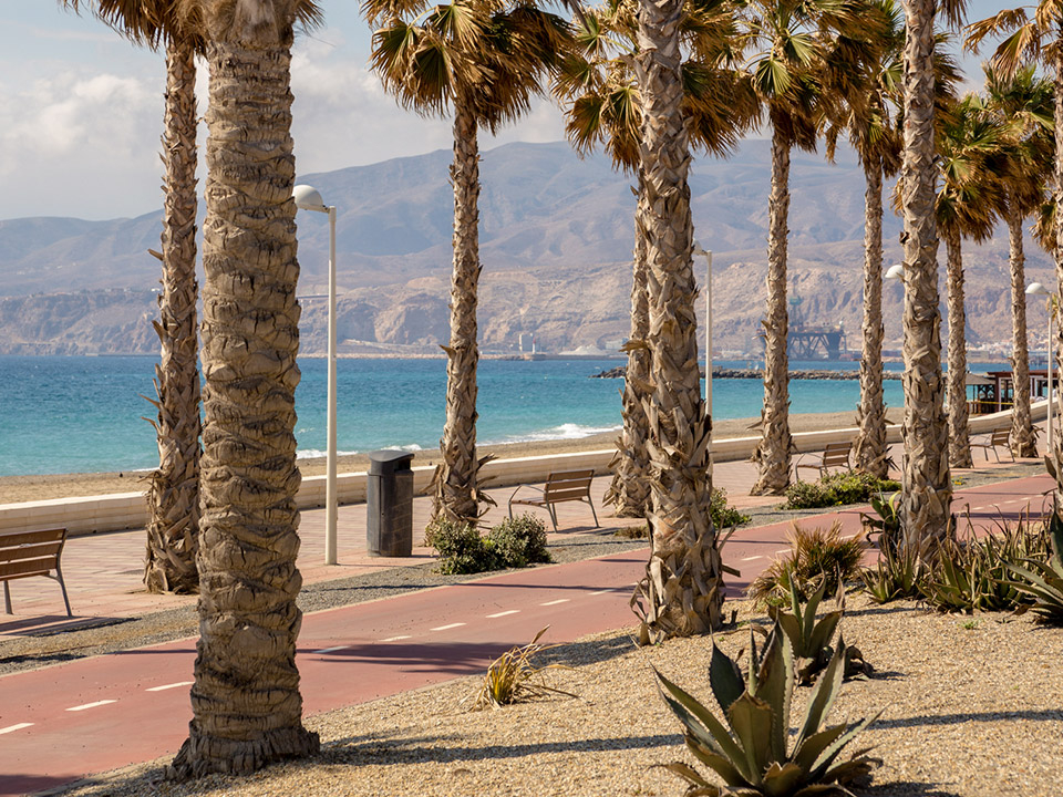 Discurre junto a la segunda fase del paseo marítimo de la ciudad con acceso para personas con discapacidad, carril bici, duchas, áreas comerciales y de restauración.