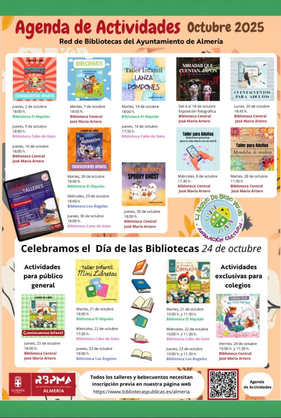 Agenda de actividades octubre 2025 de la Red de Bibliotecas del Ayuntamiento de Almería.