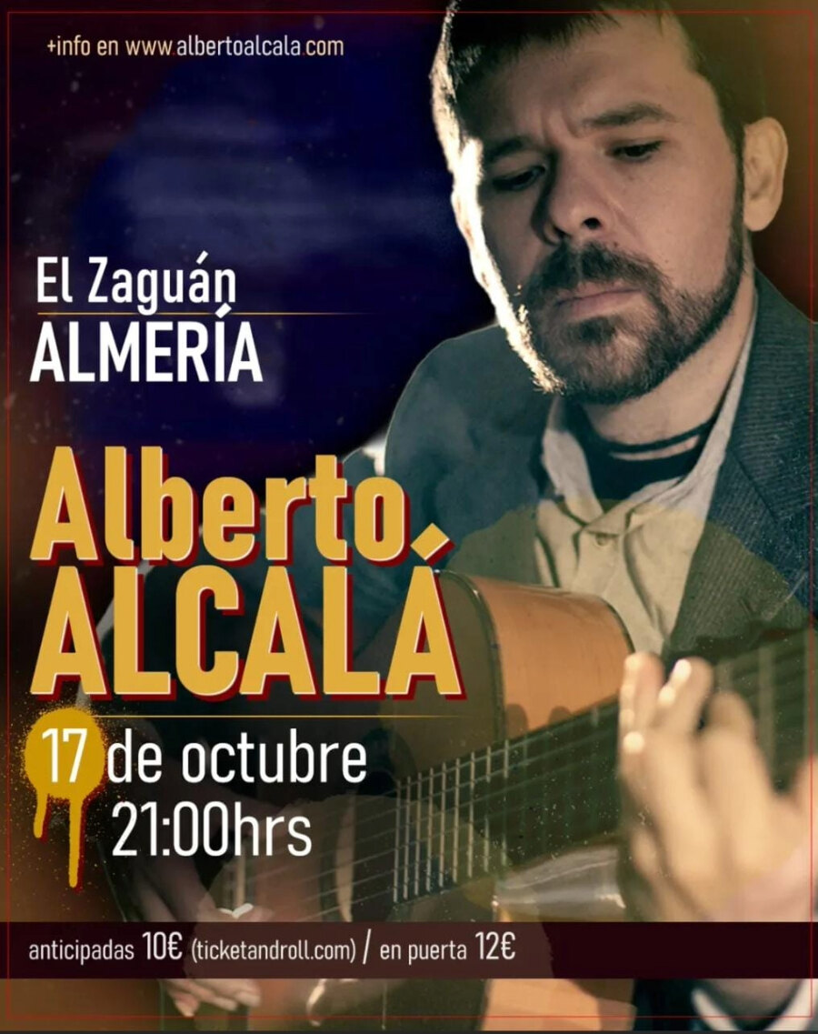 El viernes 17 de octubre a las 21:00h Alberto Alcalá en Cervecería Internacional El Zaguán (Calle San Leonardo, Almería)