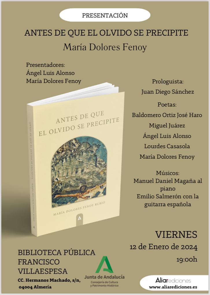 12Ene19:00 pmAntes de que el olvido se precipite - María Dolores FenoyPresentación de libro