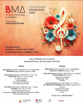 Domingo 25 de  mayo a las 12:00h concierto de la Banda de Música Municipal de Almería en el Teatro Apolo