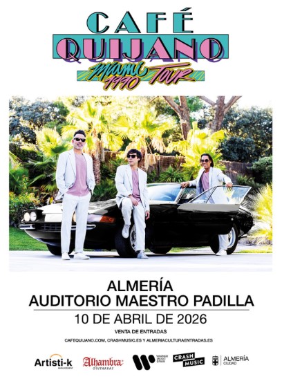 Café Quijano se presentará en el Auditorio Maestro Padilla en Almería el 10 de abril de 2026. No te lo pierdas.
