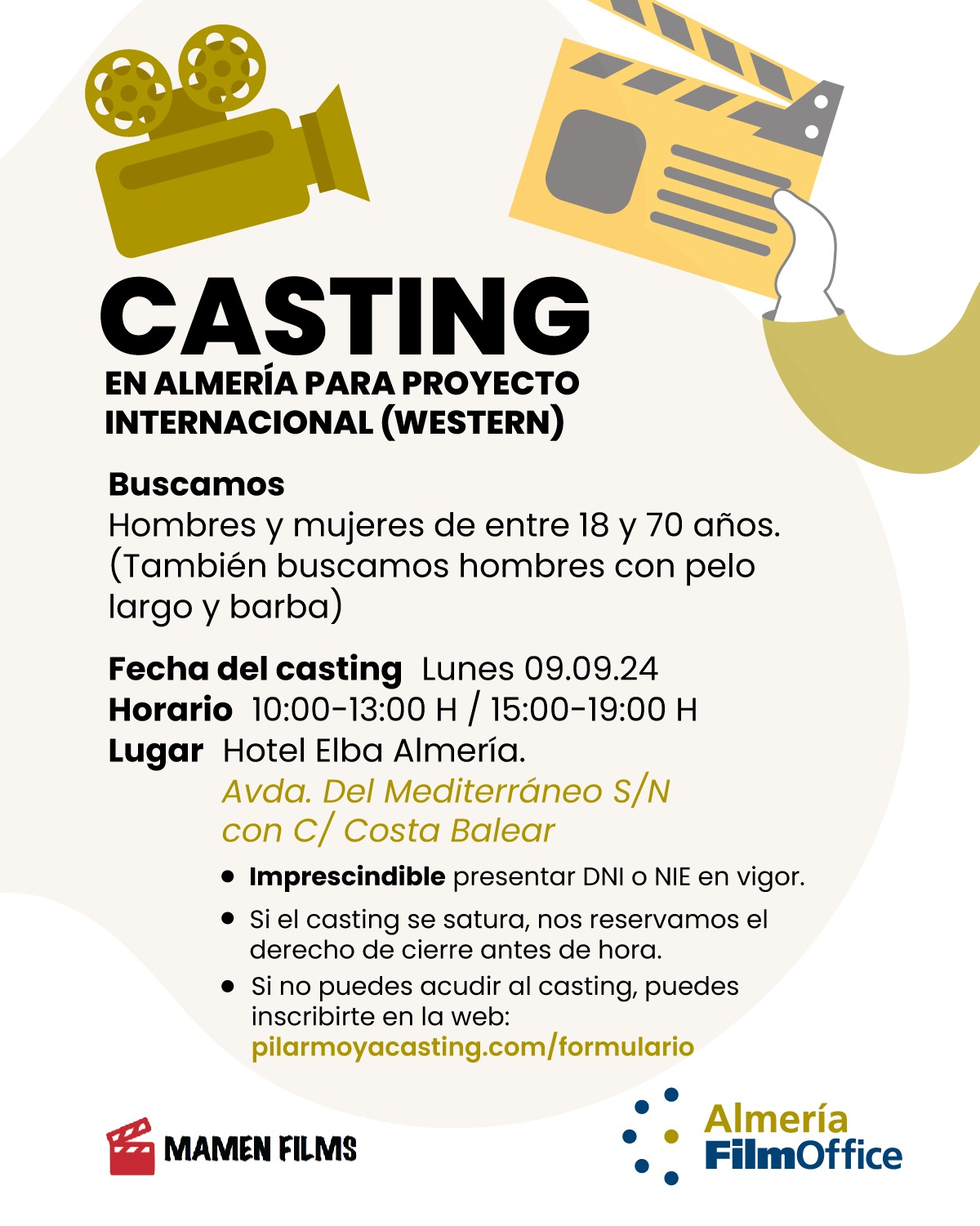 09Sep10:00 am19:00 pmCASTING EN ALMERÍA PROYECTO INTERNACIONAL (WESTERN)