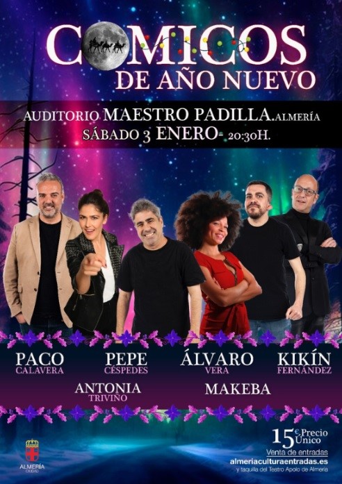 Cita ineludible con los cómicos almerienses más conocidos del panorama nacional con la incorporación este año de las dos nuevas estrellas de la comedia: Makeba y Antonia Triviño: una hora y media en la que, como cada año, prometen carcajadas constantes con lo mejor del repertorio creado en 2025. Imperdible.