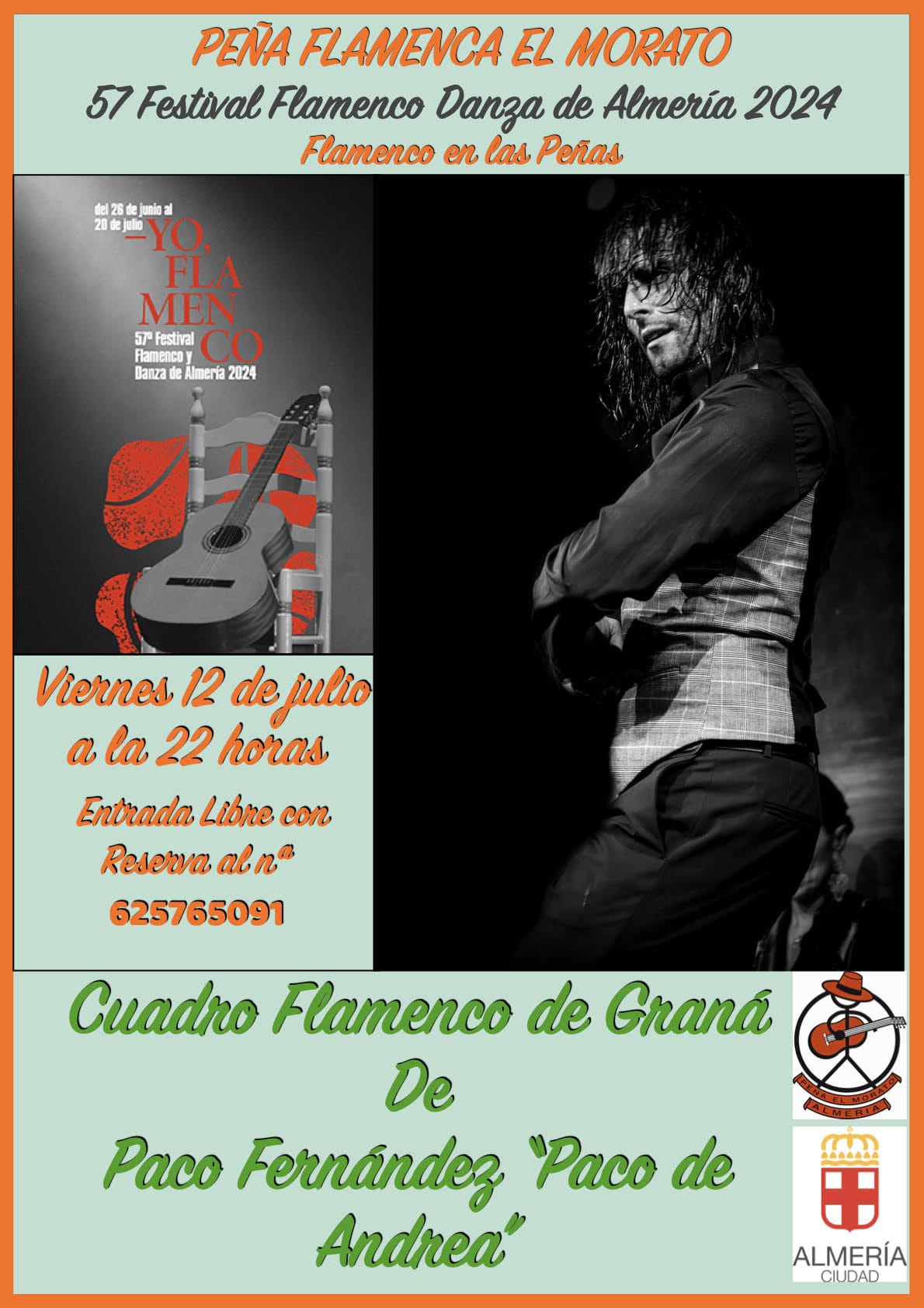 12Jul22:00 pmCUADRO FLAMENCO DE GRANÁ DE PACO FERNÁNDEZ 'PACO DE ANDREA'Flamenco