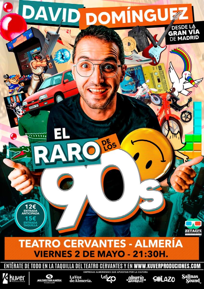 «El raro de los 90» es un espectáculo de humor en el que David Domínguez da un repaso en tono irónico, simpático y gamberro a sus vivencias y en la maravillosa década de los 90.