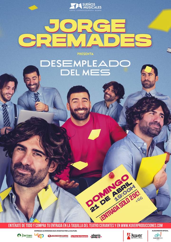 Este es el nivel de los chistes…Jorge Cremades pionero en el humor en redes sociales, vuelve para hacerte reír sin parar, en un show donde descubriremos las historias laborales más surrealistas que Jorge ha vivido antes de ser humorista. (sí amigos sí, hubo un tiempo en el que Jorge Cremades madrugó).