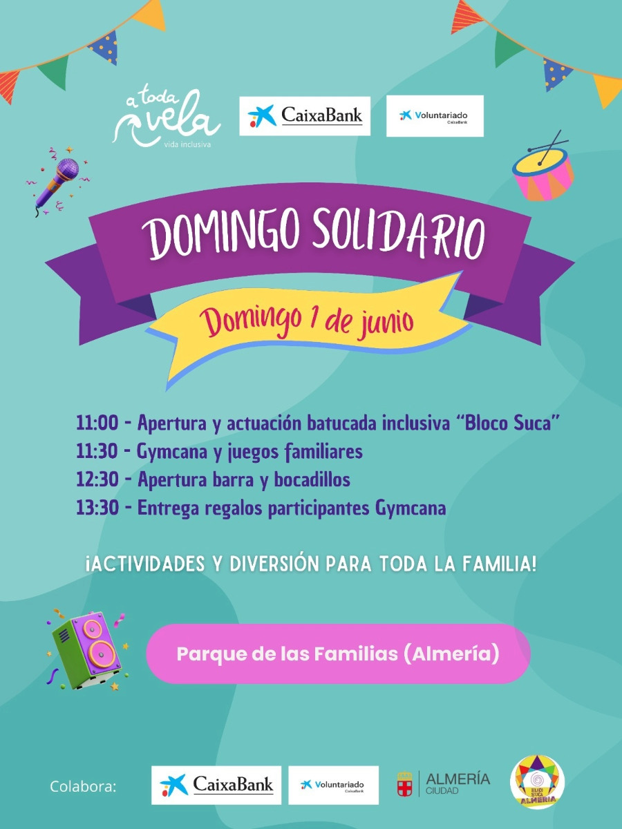 Este domingo 1 de junio os esperamos en el domingo solidario que celebramos en el Parque de las Familias de Almería.