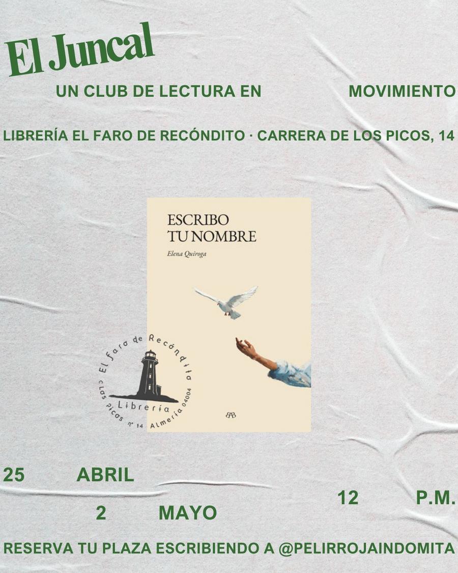 Únete al club de lectura en la Librería El Faro de Recóndito, donde discutiremos ‘Escribo tu nombre’ de Elena Quiroga. Reserva tu plaza escribiendo a @pelirrojaindomita.