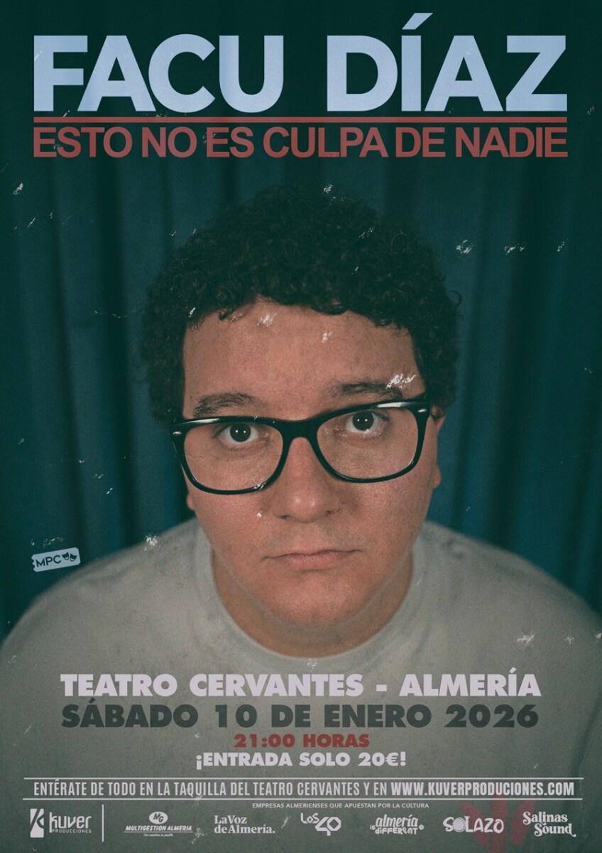 El nuevo mundo se derrumba ante nuestros ojos y nadie quiere hacerse cargo. Mientras tanto, Facu Díaz ha decidido volver al stand up para entretener a los seres humanos mientras todo arde a su alrededor. Una suerte de violinista del Titanic qué,  micrófono, en mano, analiza de manera escandalosamente sesgada lo que sucede en el planeta. Lo que está pasando es culpa de todos y a la vez culpa de nadie, o esa es la confusa teoría que pretende desarrollar el comediante uruguayo con este nuevo texto plagado de autorreferencias, proclamas políticas propias del siglo pasado y chistes vilmente usurpados a su compañero murciano.