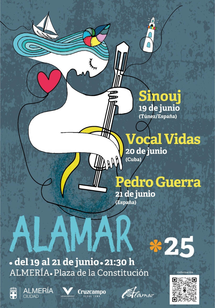 ALAMAR es sinónimo de fusión, de viaje por sonoridades de todo el mundo. Una experiencia con sello propio que cada año ofrece la posibilidad de disfrutar de otro tipo de músicas y que volverá a la programación del Área de Cultura, tradiciones y fiestas mayores del Ayuntamiento de Almería los días 19, 20 y 21 de junio a las 21:30h