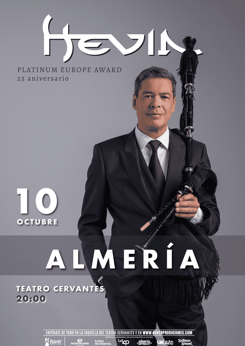 HEVIA – PLATINUM EUROPE AWARD 25 ANIVERSARIO El gaitero que más discos ha vendido en todo el mundo, con tres millones de copias, celebra, en el Teatro Cervantes de Almería el