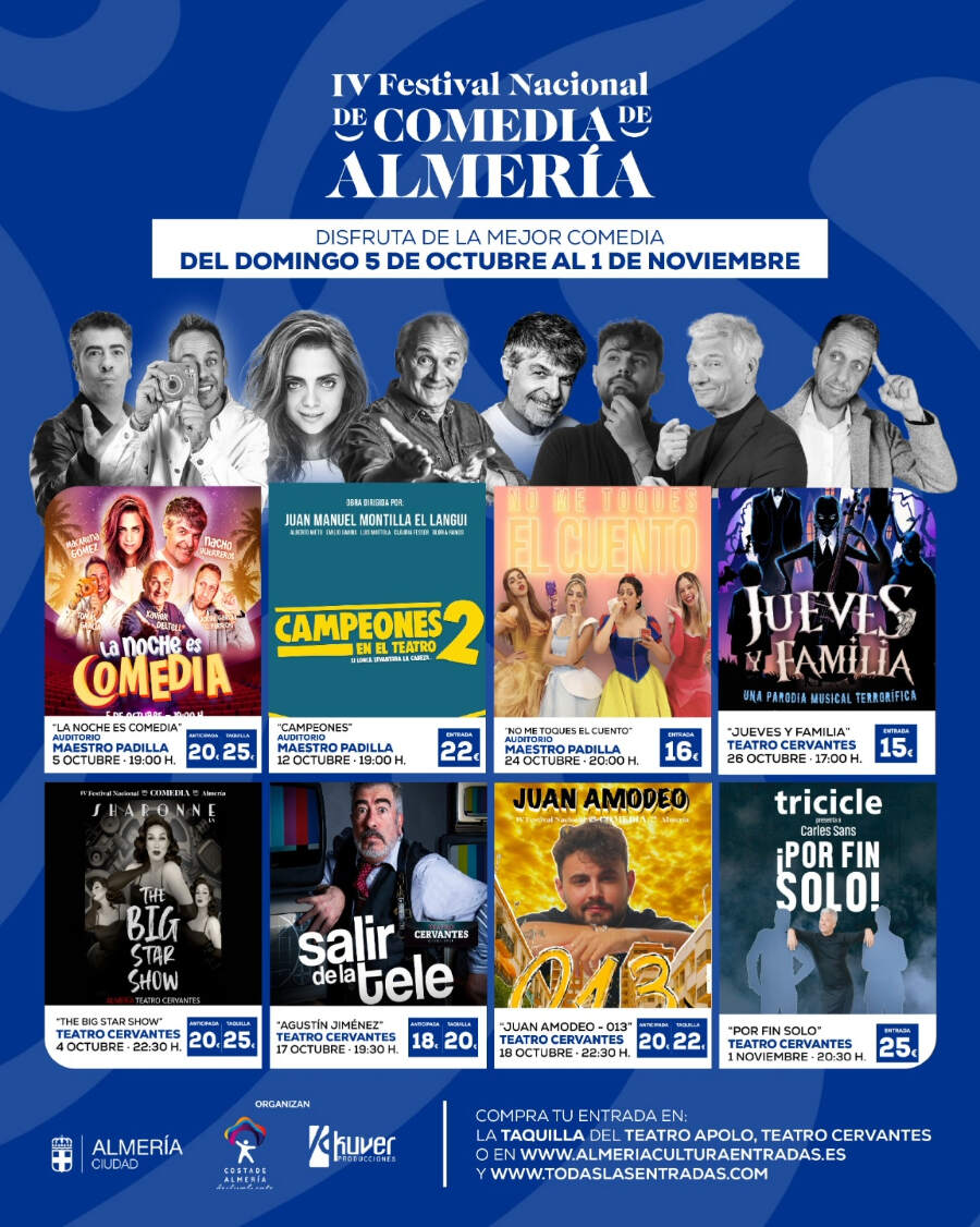 El IV Nacional de Comedia de Almería se celebrará del 5 de octubre al 1 de noviembre en el Teatro Cervantes y el Auditorio Maestro Padilla.