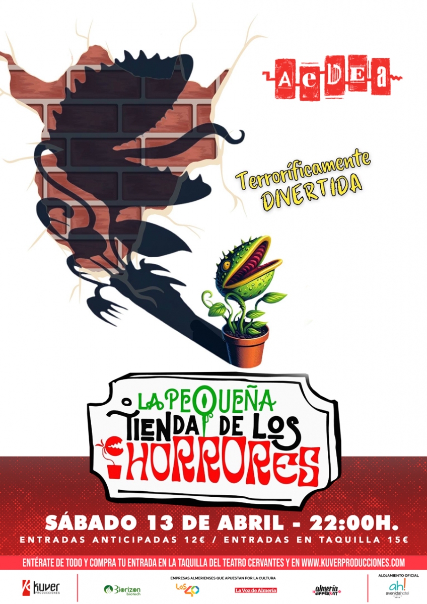 ‘La pequeña tienda de los horrores’ llega al Teatro Cervantes de Almería el próximo sábado 13 de abril a las 22:30 horas de la mano de AEDEA Teatro. ¡Un musical terroríficamente divertido!