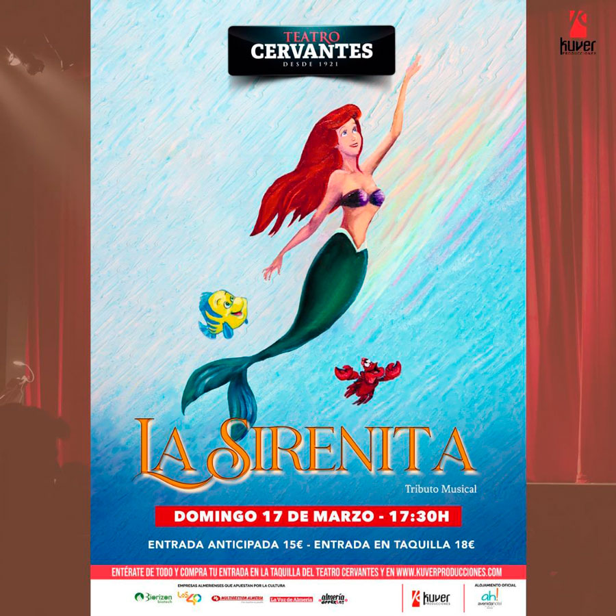 ¡No te pierdas ‘LA SIRENITA, TRIBUTO MUSICAL’! Revive el clásico musical de Disney de la mano del tributo de la compañía LA BARBARIE TEATRO MUSICAL. Será el domingo 17 de marzo a las 17:30h en el Teatro Cervantes de Almería.