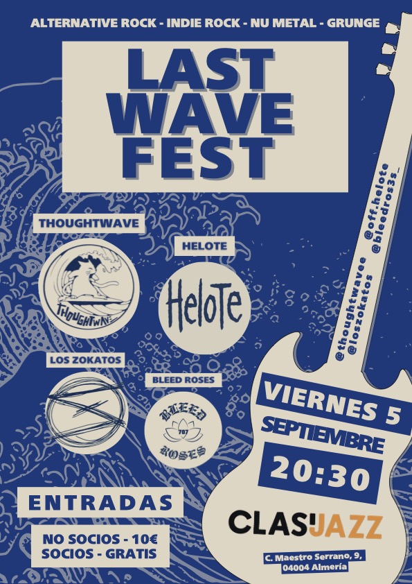 Hola Almería!!!, ven al Clasijazz, para disfrutar de «LAST WAVE FEST» Nuestro regalo @thoughwavee para despedir este verano lleno de conciertos y eventos.