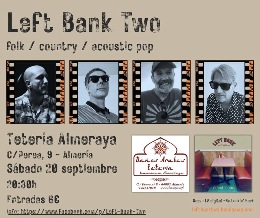 El sábado 20 de septiembre a las 20:30h el grupo de música Left Bank Two en la Tetería Almeraya
