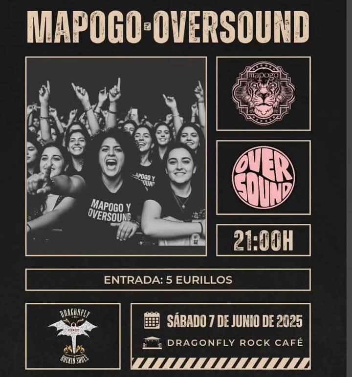 El sábado 7 de junio conciertos de MAPOGO Y OVERSOUND en Dragonfly Rock Café a las 21:00h