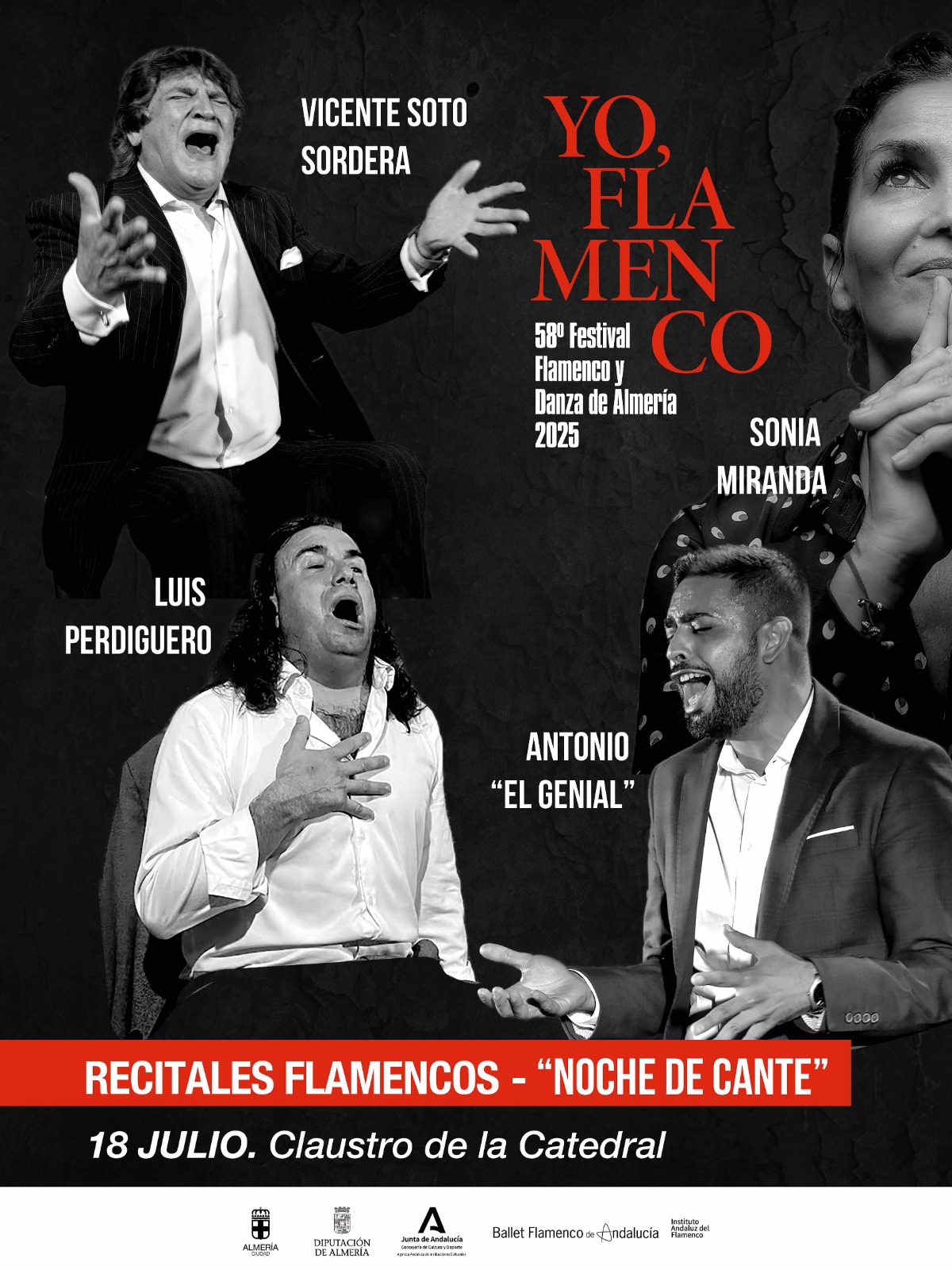 El viernes 18 de julio a las 21:30h en el Claustro de la Catedral «Noche de cante» con Vicento Soto Sordera, Luís Perdiguero, Sonia Miranda y Antonio «El Genial»