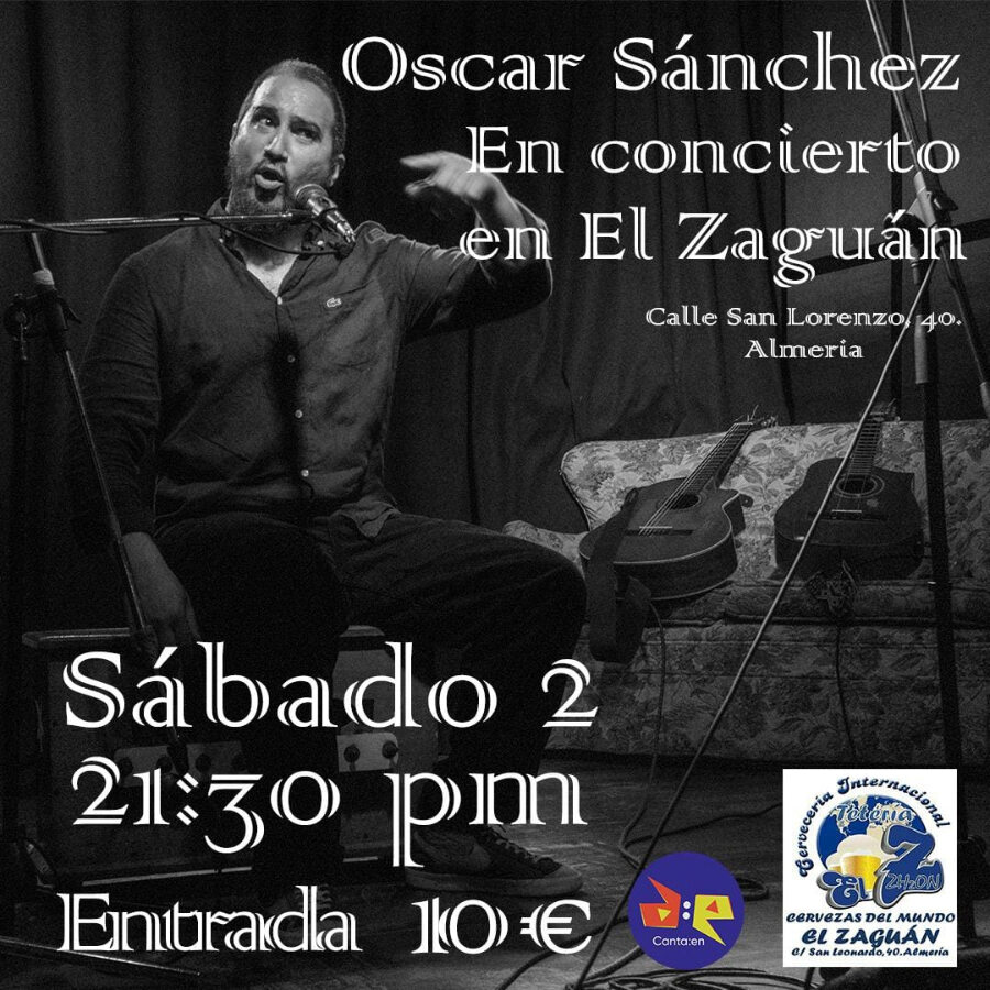 Este sábado 2 de agosto a las 21:30h concierto de Óscar Sánchez en el Zaguán Almería.