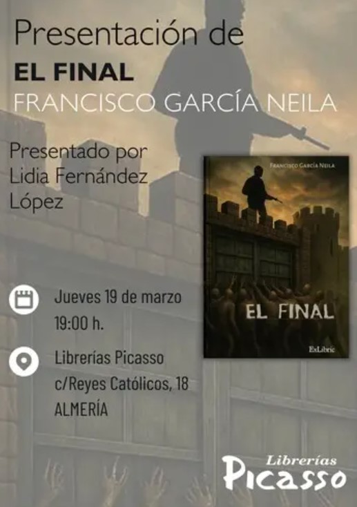 Librerías Picasso se complace en invitarles a la presentación del libro «EL FINAL», de Francisco García Neila, presentado por Lidia Fernández López. La cita será en nuestra librería de Almería, calle Reyes Católicos 18, el próximo jueves 19 de marzo a las 19:00 horas.