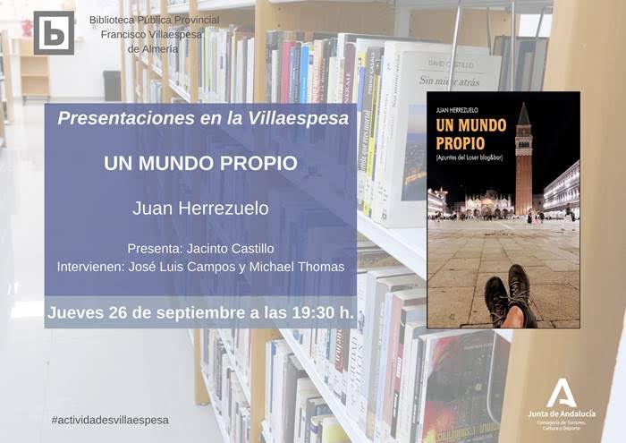 26Sep19:30 pmPRESENTACIÓN "UN MUNDO PROPIO" DE JUAN HERREZUELO