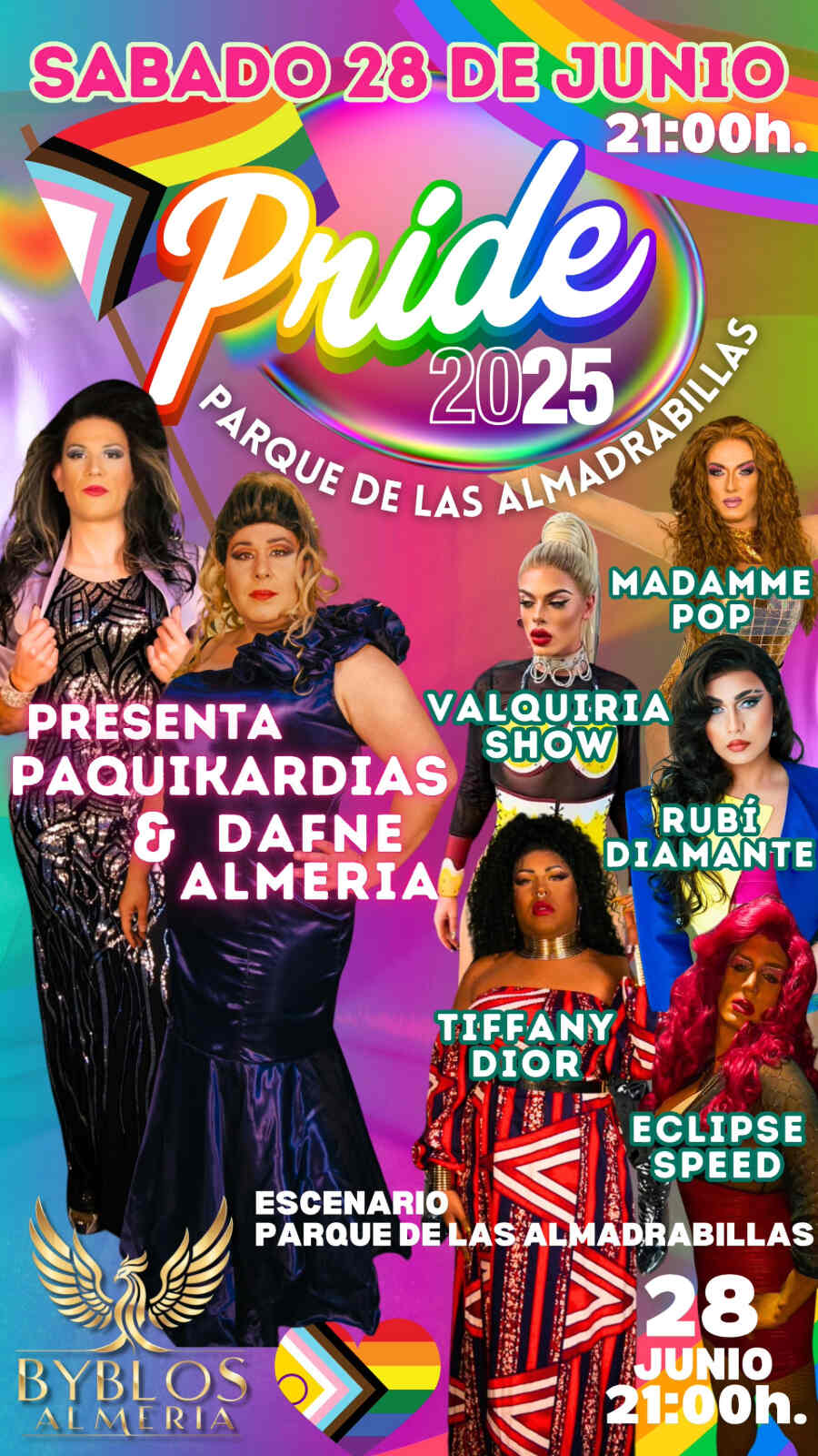 Este será el elenco de artistas, que estarán en el escenario del orgullo de Almería, show, arte y emoción.