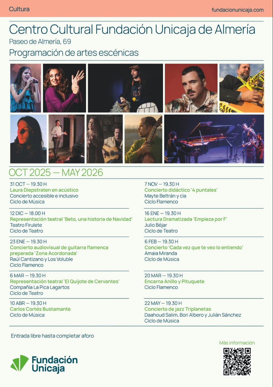 El Centro Cultural Fundación Unicaja de Almería arranca su programación de artes escénicas con un concierto de Laura Diapstraten en acústico el viernes 31 de octubre a las 19:30h con entrada libre hasta completar aforo.