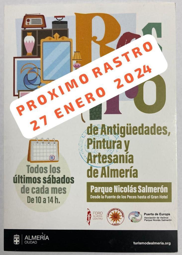 27Ene10:00 am14:00 pmRastro de antigüedades pintura y artesanía de Almería - EneroMercadillo