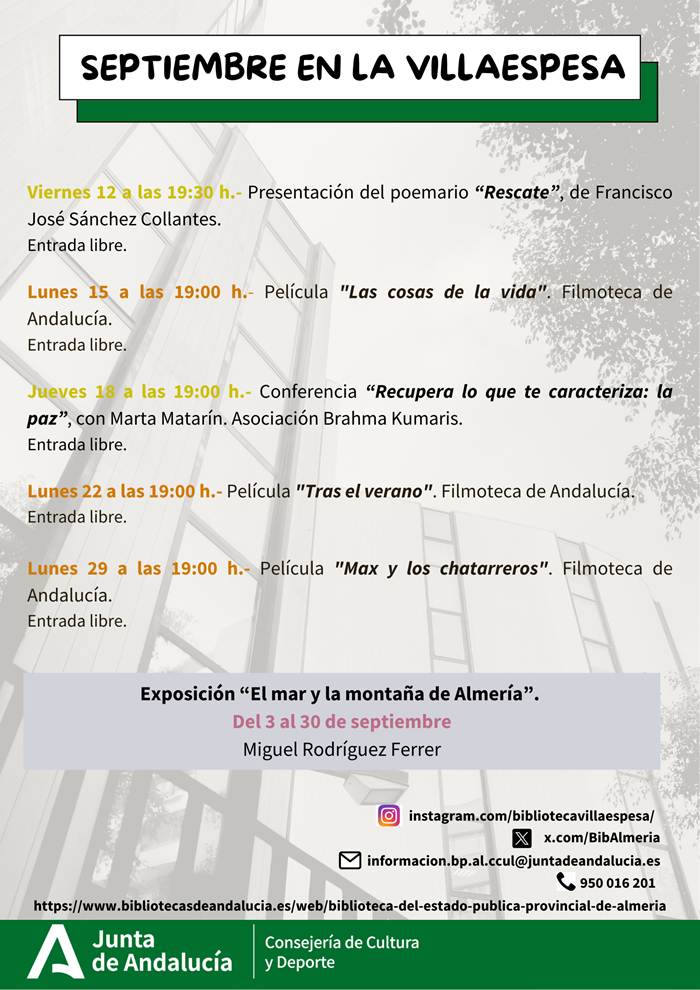 12Sep19:30 pmSEPTIEMBRE EN LA VILLAESPESAActividades de la Biblioteca Villaespesa