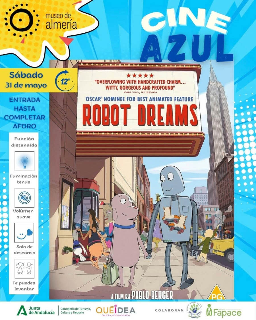 Sesión de cine azul con la proyección de Robot Dreams el sábado 31 de mayo a las 12:00h en el Museo de Almería.