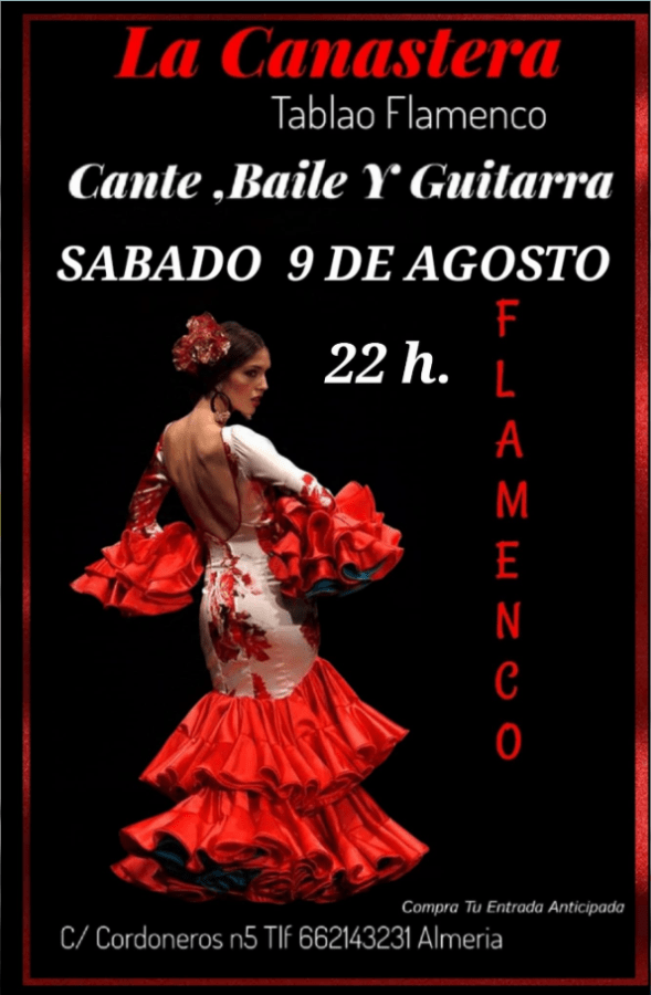 En el Tablao Flamenco La Canastera Almería, se puede disfrutar de un espectáculo en directo desde muy cerca. Igual se puede completar esta intensa experiencia con una copa de vino o cerveza para combatir el calor que provoca el nervio del flamenco, cuando en la penumbra del escenario se desarrolla el espectáculo que mueve el alma.