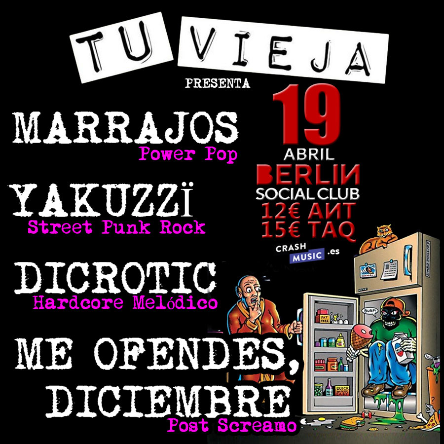 TU VIEJA PRODUCCIONES desde 2010, es una productora/promotora de conciertos de bandas de todo tipo dentro del espectro Hardcore/punk/rock estatal e internacional. Han situado a Almería como para obligada en las giras de bandas como Standstill, Gas Drummers, Same old, Shake before Use… y organizado conciertos para infinidad de bandas.