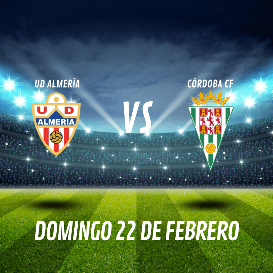 Partido de fútbol entre la UD Almería y Córdoba CF que se celebrará el domingo 22 de febrero en el UD Almería Stadium.
